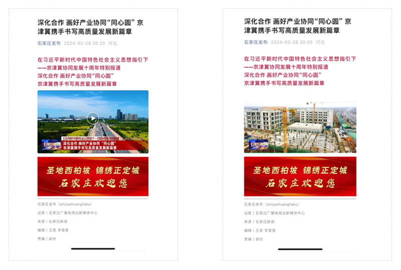 2024年迎來了“京津冀協同發展”戰略十周年,在此戰略的引領下,石家莊市深化產業協同,積極推進北京非首都功能疏解、產業體系融合和區域高質量發展,越來越多的優秀企業、項目在石家莊落地。在京津冀協同發展戰略實施十年之際,由石家莊市人民政府新聞辦公室主辦的公眾號“正定發布”,特別撰文——《深化合作 畫好產業協同“同心圓”——京津冀攜手書寫高質量發展新篇章》,并在《石家莊新聞》進行了播報,康譽醫療作為該戰略的代表性企業,有幸被報道。
