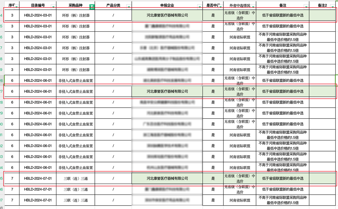 9月26日,河北省醫療保障局發布了《關于公布導尿包等7種醫用耗材帶量聯動中選結果的通知》,正式公示了此次帶量聯采的結果。康譽醫療申報的一次性使用連通板、一次性使用環柄注射器、一次性使用橈動脈壓迫止血器,3個項目經過激烈角逐,全部中選。河北省公立醫療機構和軍隊醫療機構作為采購主體,采購周期2年。