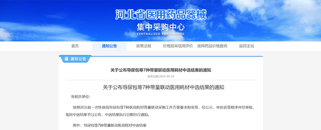 “河北省7種醫用耗材帶量聯動采購”中榮獲
